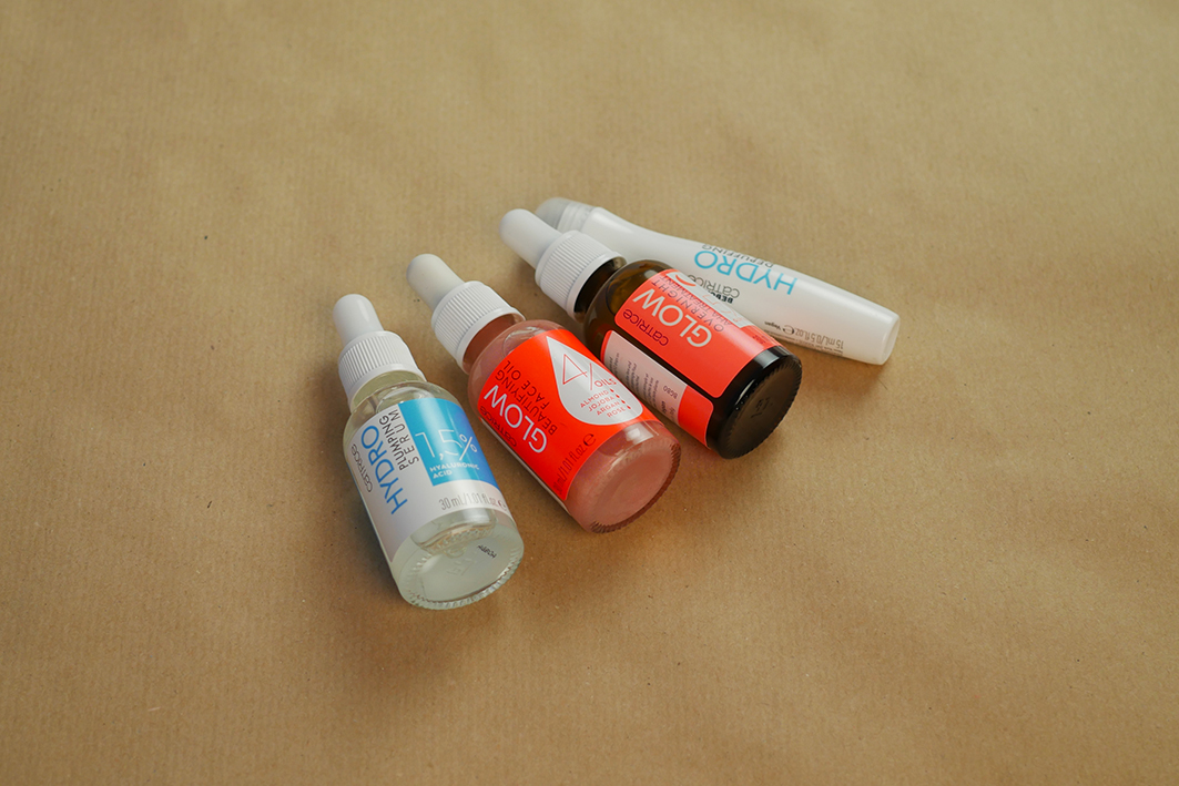 Meine Wahl fiel auf das Hydro Plumping Serum, das Overnight AHA Treatment, das Glow Beautifying Face Oil und das Hydro Depuffing Eye Serum. Alle Produkte sind vegan und kommen ohne deklarationspflichtige Duftstoffe aus – sind jedoch teilweise parfümiert.