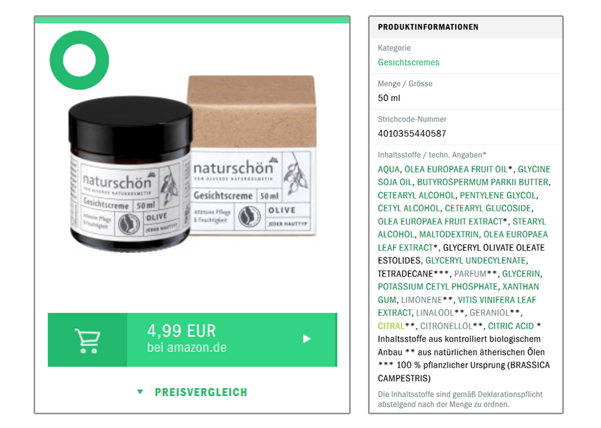 Je nach Art der Inhaltsstoffe ergibt sich so für jedes Produkt ein Kreisdiagramm, welches je nach Einschätzung grün bis rot ausfällt. Aber ist diese Einschätzung wirklich gerechtfertigt?