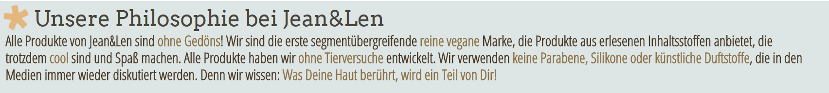 Wir schließen die Lücke zwischen traditioneller, dogmatischer Naturkosmetik, die gute Inhaltsstoffe hat, aber langweilig und öko aussieht, und stylischen und lustvollen Produkten. Wir haben beides vereint. Unsere Produkte sehen anders und stylisch aus und haben dabei top Inhaltsstoffe!