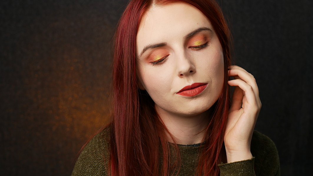 Als Farbkomposition auf Fotos sieht das – insbesondere in Kombination mit deinen tollen Haaren – hübsch aus, allerdings habe ich den Eindruck, dass man durch einen rötlichen oder orangefarbenen Lidschatten in der Regel etwas kränklich und verheult aussieht.