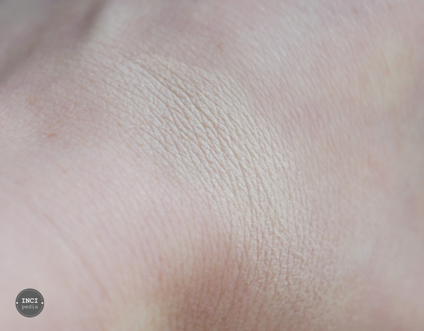 Wie man unschwer erkennen kann, sind typische Bestandteile wie z.B. Talkum in diesem Produkt nicht vertreten. Dafür aber ein paar oberflächenausgleichende Substanzen wie Nylon-12, sowie Silikonöle. Nylon-12 wird als sehr feines Pulver verkauft, welches die Eigenschaft hat – ähnlich den Silikonölen – kleine Fältchen und Unebenheiten aufzufüllen. Das ist jetzt nicht sehr verwunderlich, das es sich um eine Powder Foundation handelt. Allerdings finde ich nicht, dass sie als solche gut funktioniert. Trage ich sie wie beschrieben mit einem feuchten Schwämmchen oder allein auf, dann empfinde ich das Ganze als zu cakey. Als Puder jedoch ist es meiner Meinung nach perfekt!