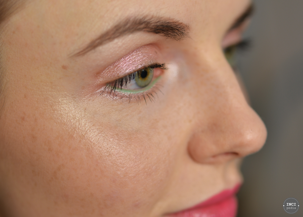 Was man schlecht erkennt, ist das wunderschöne Schimmern des Kryolan Lidschattens. Es war nahezu unmöglich es mit der Kamera einzufangen. Dieses tolle Teilchen habe ich in Hamburg gekauft und mir sogleich ein paar andere Farben zugelegt, weil mir dieses Subtile so gefällt! Denn nur unter ganz bestimmten Lichtverhältnissen zeigt sich die gesamte Schönheit des losen Eyeshadows.