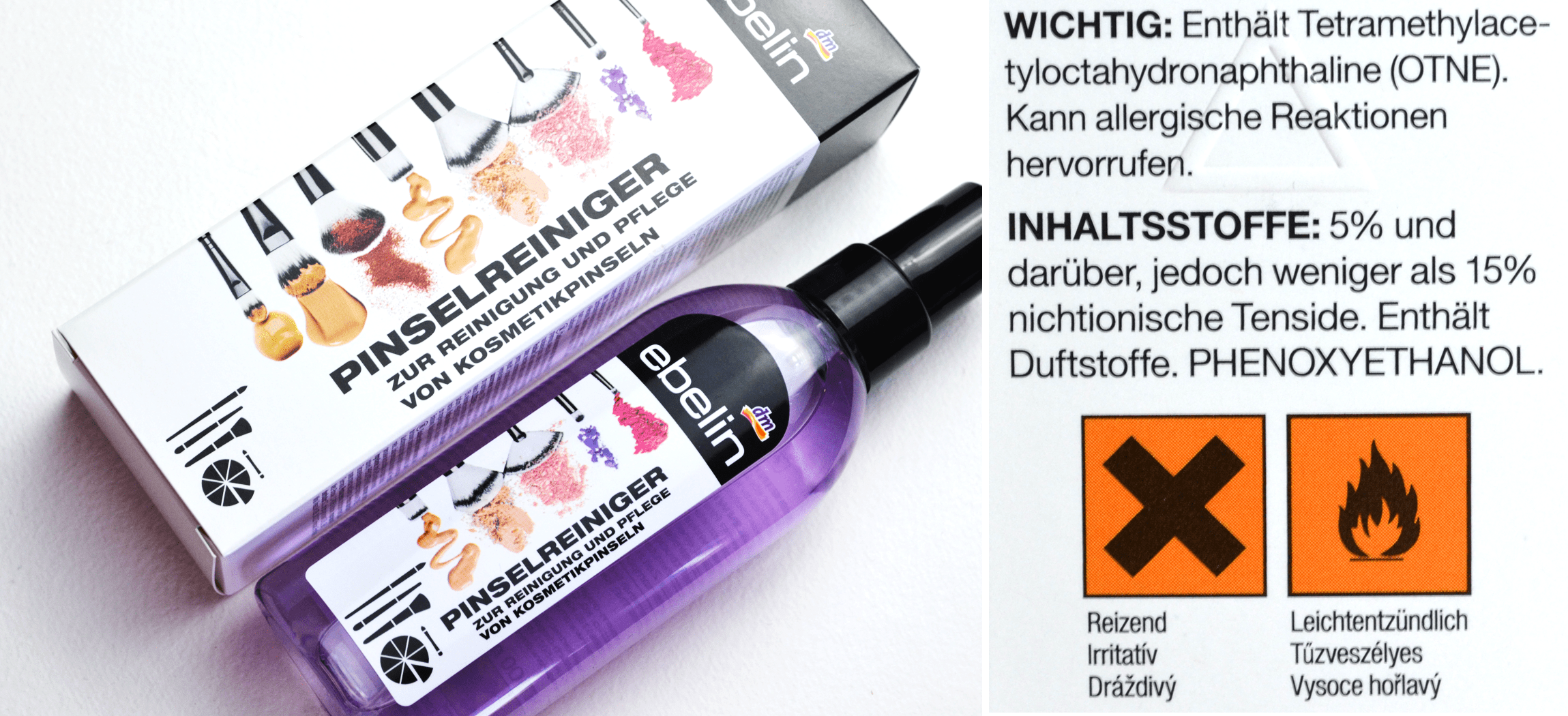 Wie unschwer zu erkennen ist, befindet sich ein Inhaltsstoff im Pinselreiniger dessen Name sogar mir einen Knoten in die Zunge gezaubert hat. Aber was genau verbirgt sich hinter OTNE und wieso kann es allergische Reaktionen hervorrufen? Es ist ein Duftstoff. Der hat aber ein geringeres Allergiepotenzial als Geraniol, Limonene, Farnesol usw. Deshalb finde ich es irgendwie eigenartig, dass bei diesem Produkt darauf hingewiesen wird obwohl wir wissen, dass in fast jeder Gesichtscreme reizendere Duftstoffe verwendet werden. Trotzdem irgendwie eine nette Info. Der Reiniger besteht zum größten teil aus Alkohol, was desinfizierend (ab 70%) und fettlösend ist. Laureth-4 (Mulsifan) ist hier das verwendete Tensid, welches keine Ladung hat und somit neutral ist. Hexyldecanol soll die Pinselhaare „pflegen“.