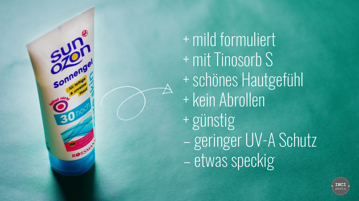 Anhand der Zusammensetzung können wir schon erkennen, dass der gesamte UV-Bereich durch diesen Sonnenschutz abgedeckt wird. Avobenzon (Butyl Methoxydibenzoylmethane) ist recht instabil, erlangt jedoch durch Tinosorb S (Bis-Ethylhexyloxyphenol Methoxyphenyl Triazine) mehr Stabilität. Zudem wurden keine Duftstoffe und kein Ethanol hinzugefügt. Ganz großartig! Vor allem wenn man bedenkt, dass dieses Gel nur 2,49 EUR kostet.