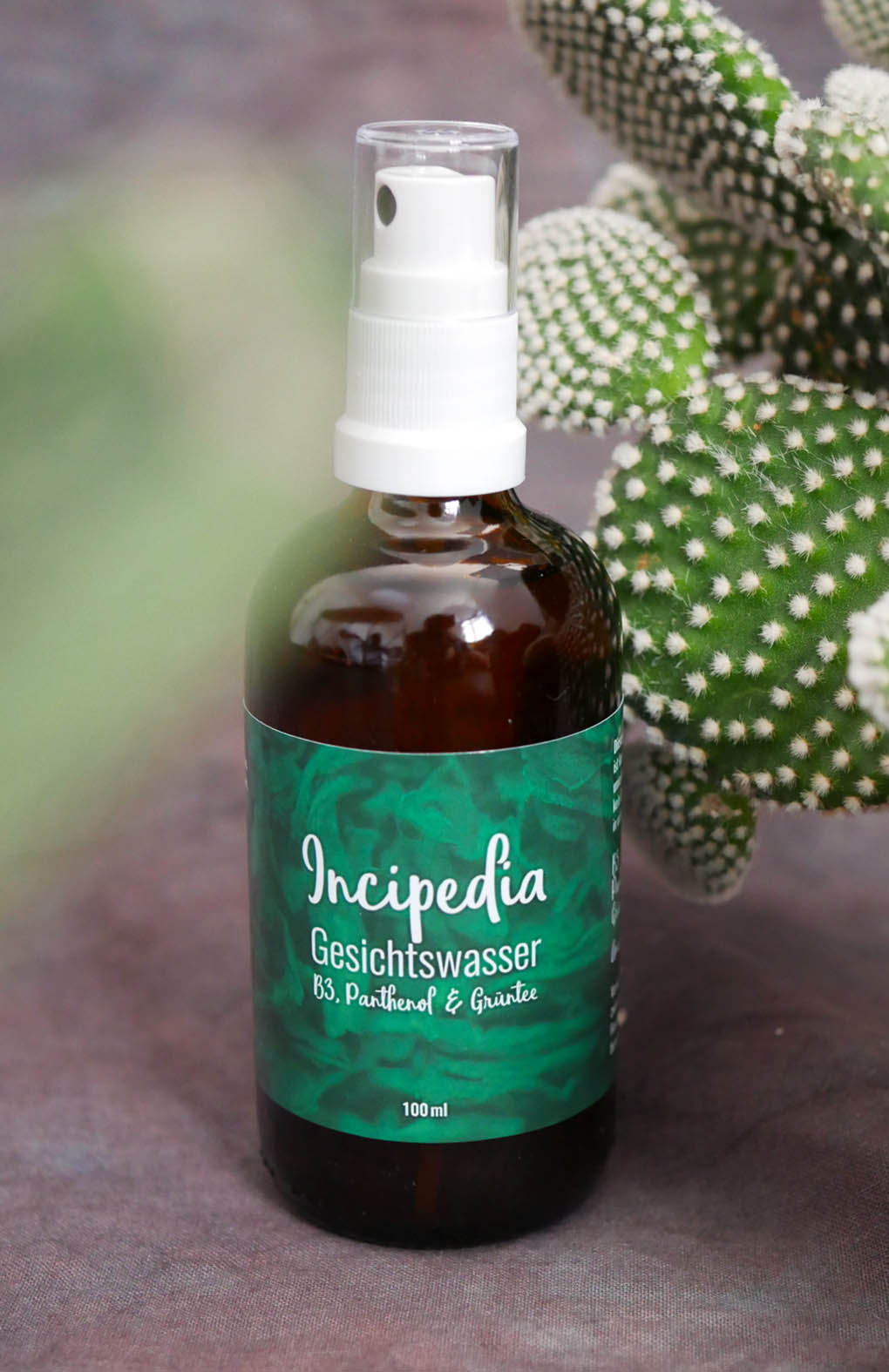Aqua, Panthenol (5 %), Niacinamide (5 %), Glycerin, Propylene Glycol, Camellia Sinensis (Green Tea) Leaf Extract, Potassium Sorbate, Sodium Benzoate // vegan + tierversuchsfrei