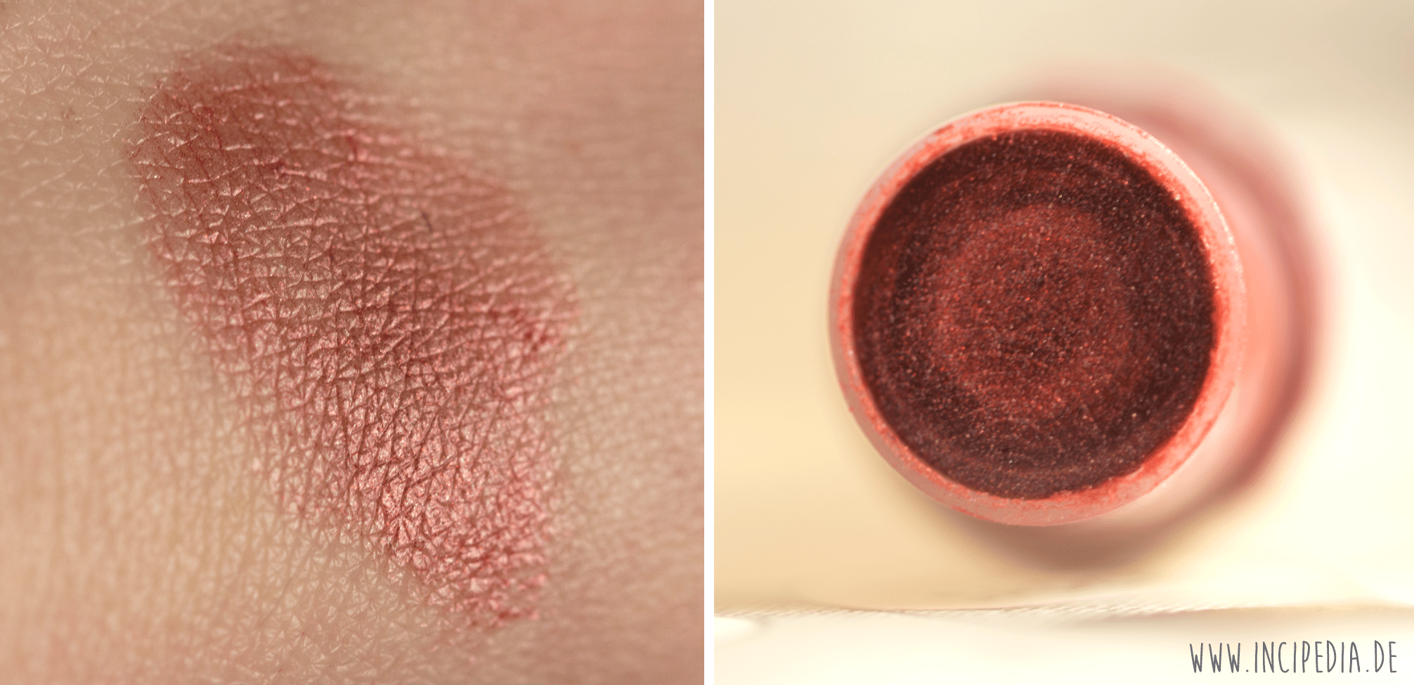 Das Produkt gleitet wunderbar über die Lippen und macht sie richtig weich. Die Süße ist eine nette Beigabe, die absolut nicht stört. Ich mag diesen Lipbalm sehr. Nur die Farbe stört mich ein wenig, wobei Eisenoxidrot natürlicherweise so orange-rot aussieht. Leider hat der Drehmechanismus sehr schnell den Geist aufgegeben und der Lipbalm lässt sich nicht mehr ordnungsgemäß zurück drehen. Das geht mir wiederum ziemlich auf den Keks. Nichtsdestotrotz spreche ich eine Kaufempfehlung aus, falls ihr auf der Suche nach einem schönen Lippenprodukt seid, das die Lippen leicht einfärbt und gut pflegt.